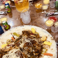 Customer reviews resonate with enthusiasm, describing the food as "incredible" and the service as "fast and good." The inviting atmosphere includes comfortable seating and traditional Majlis arrangements, creating a perfect setting for gatherings.